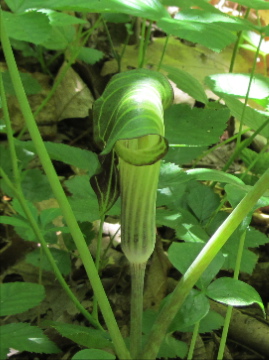 Jack-in-the-pulpit grows low to the ground, in boggy areas.