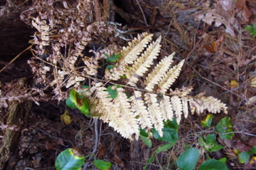 They do not have flowers. They reproduce by making tiny spores, which look like small dots on the underside of some of the leaves. The long leaves on ferns are called fronds. In the early spring, new leaves unroll from a tight spiral called a fiddlehead. There are two types of ferns on this trail, marsh ferns and sensitive ferns. Sensitive ferns are found near the water and have finger-like leaflets. Marsh ferns, with many sub-leaflets, are more common on the higher section of the trail. When you leave the trail, don't forget to look for the marker for milkweed in the parking lot. |