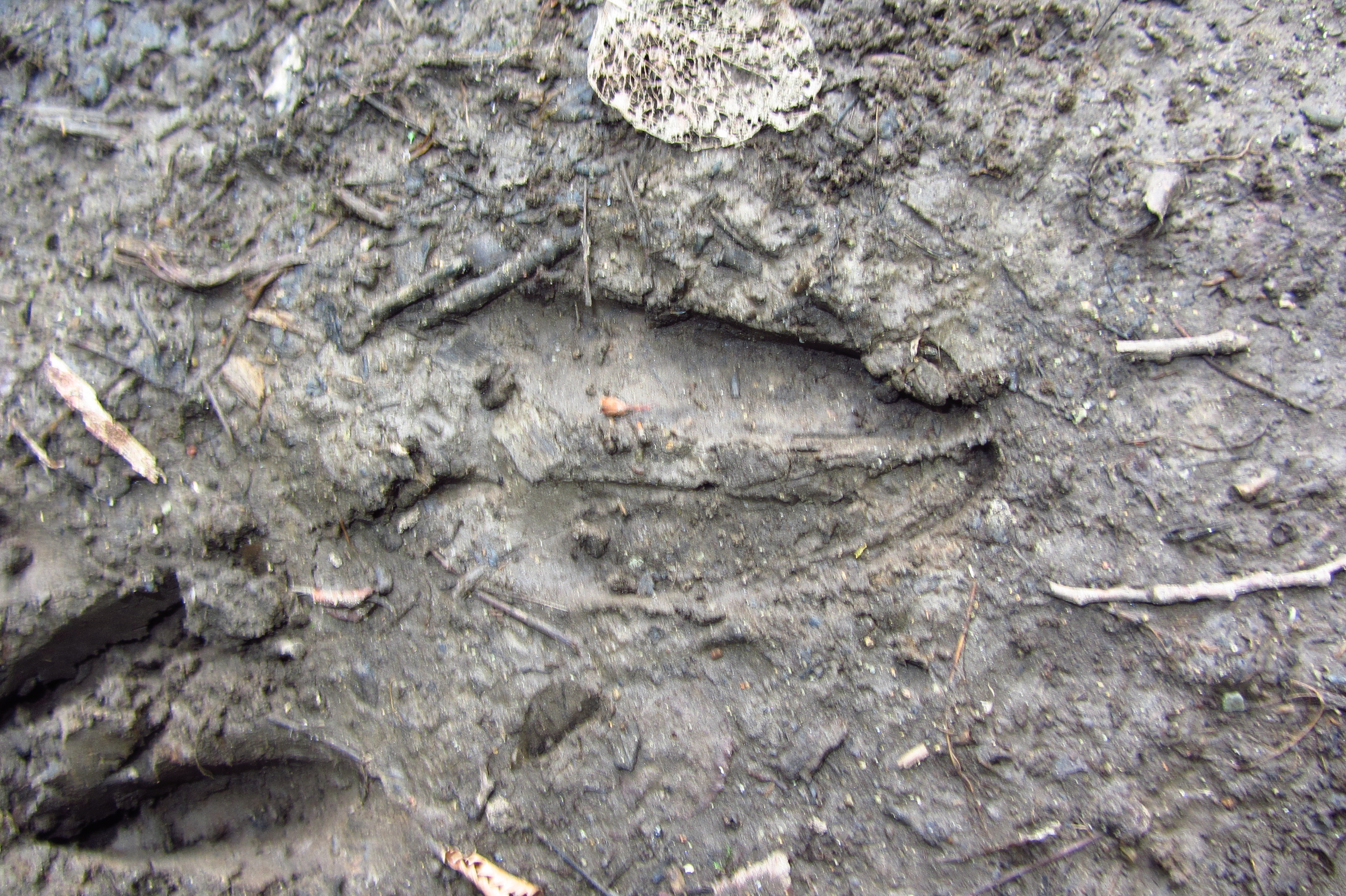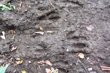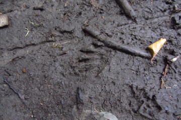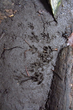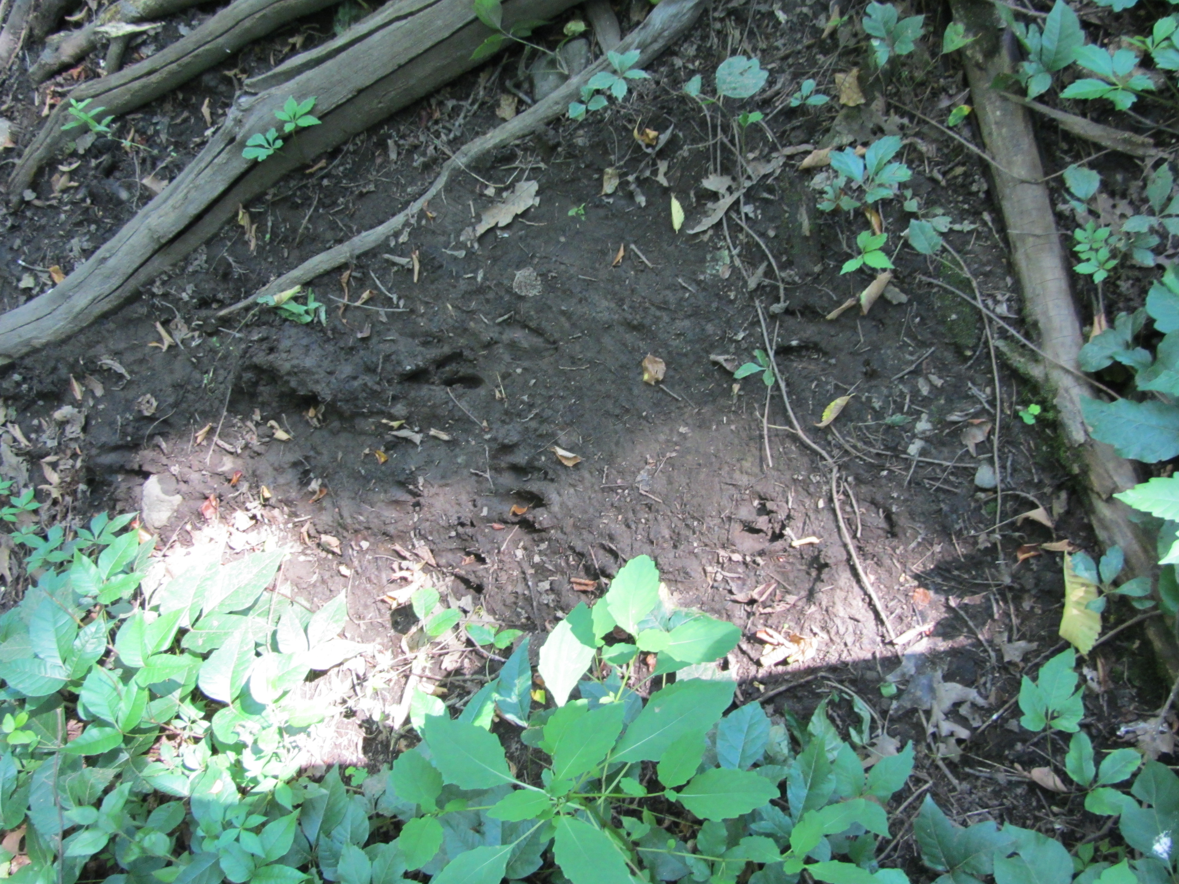 Along this trail, near the signpost for touch-me-not, you can see deer tracks, raccoon prints, and sometimes even great blue heron prints.