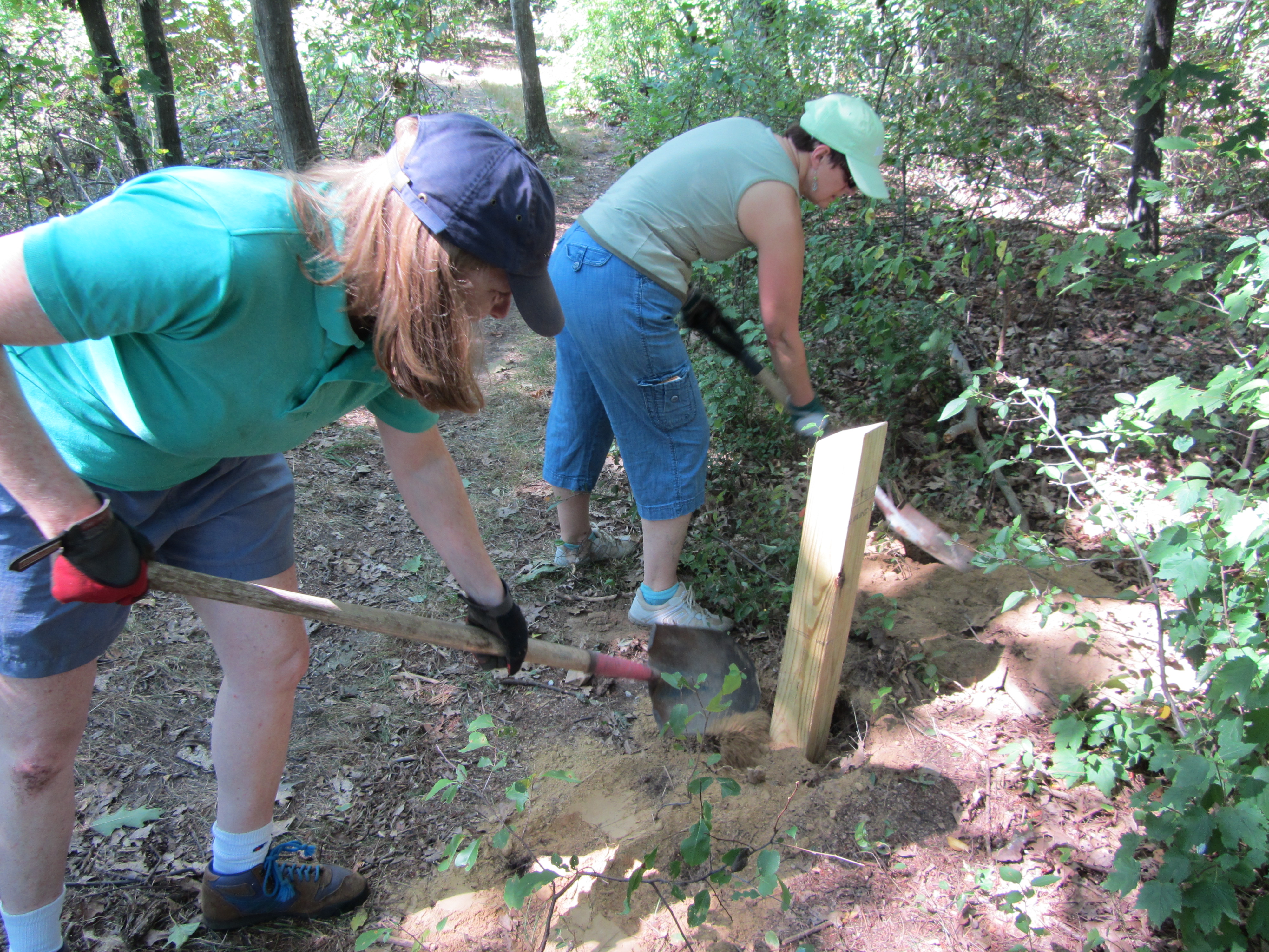 Amy and Cammie fill in the hole for Maple-leaf viburnum |
