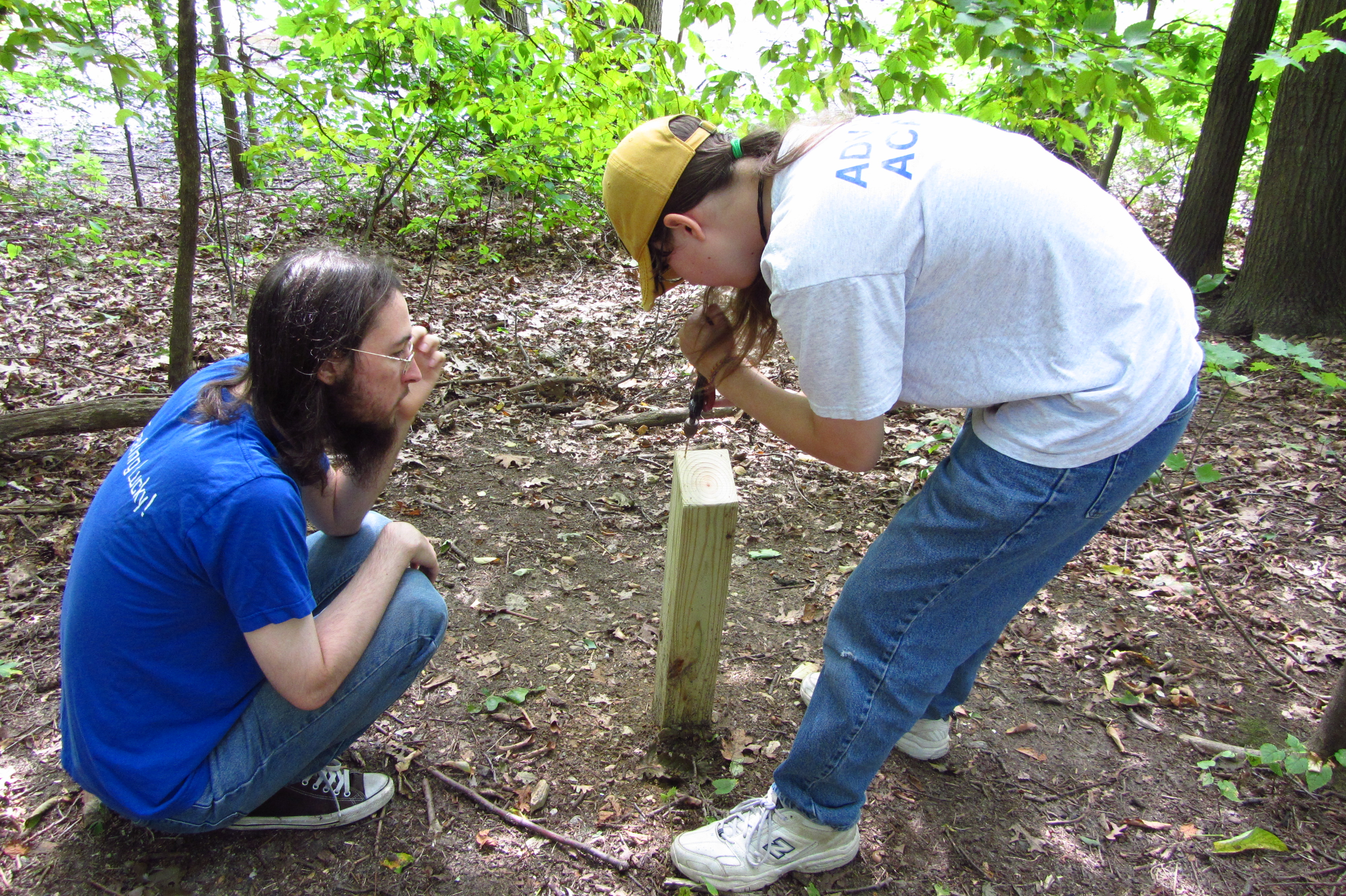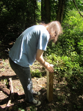 Melissa marking placement of sign holes |