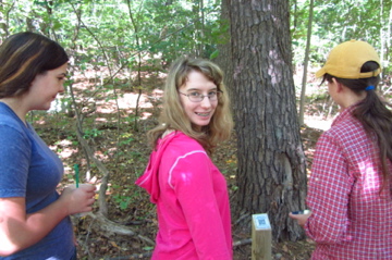Showing the completed trail to fellow Girl Scouts Gabryela and Devon |